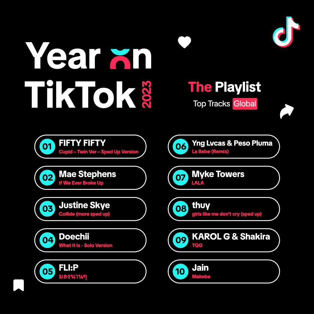 On a global level, K-Pop group Fifty Fifty had the top track on TikTok in 2023. The sped up version of Cupid was popular across the board as a backing track, from food tutorials to outfit picks.