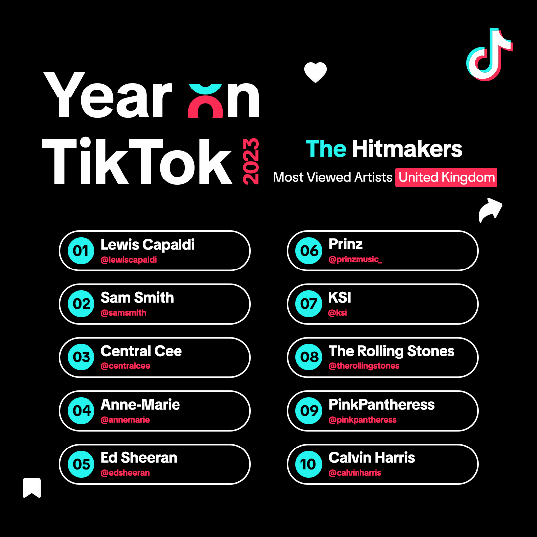 TikTok’s 2023 Year in Music includes the top songs that soundtracked the year and the most viewed UK artist accounts.